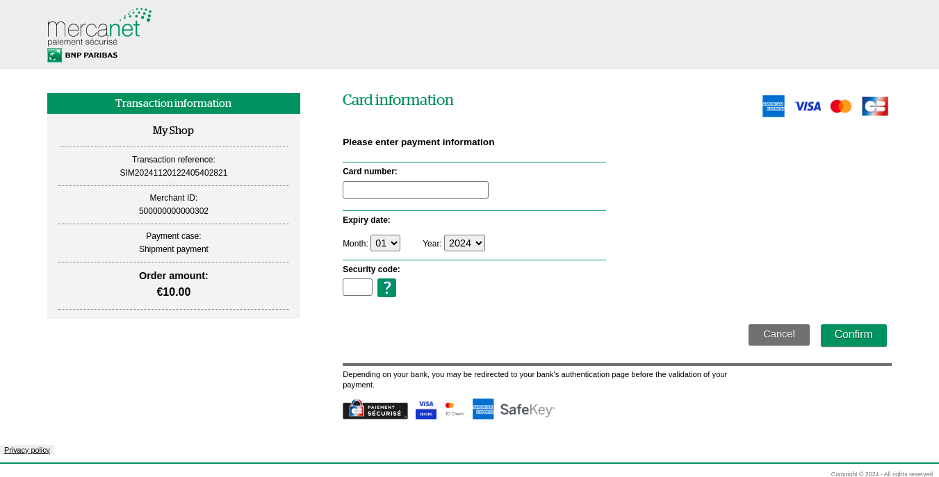 - Mercanet carries out anti-fraud checks.
