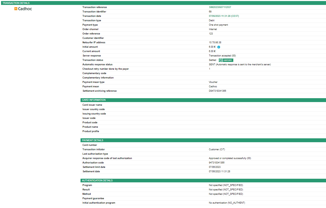 You can view your transactions details and perform various cash management operations with Mercanet Back Office.
