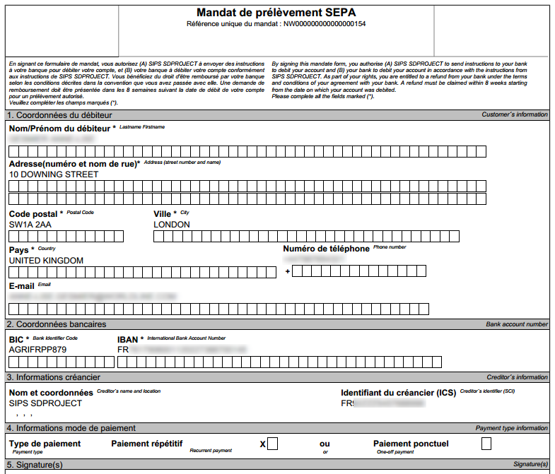 - You have to transmit details related to the customer (identification and contact details), and the customer cannot modify these details during the mandate creation.