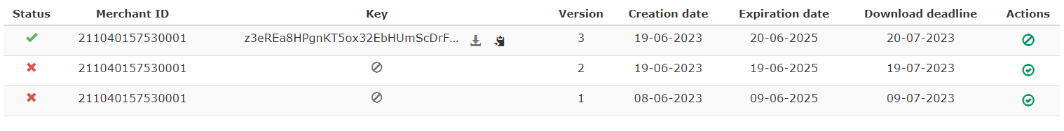 - Decommission the old key clicking on the icon in front of the this key.