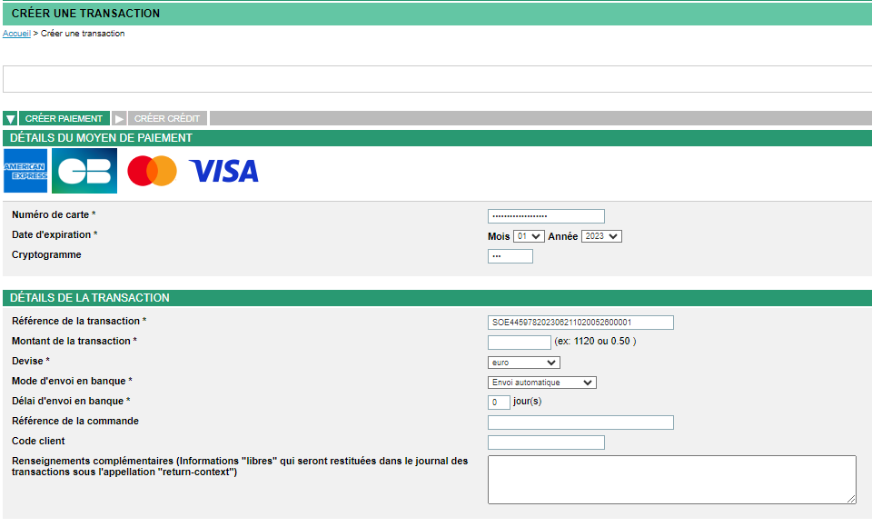 Lors d’une création de transaction, et en fonction du mode choisi, Mercanet accepte ou rejette la création et génère des identifiants complémentaires.