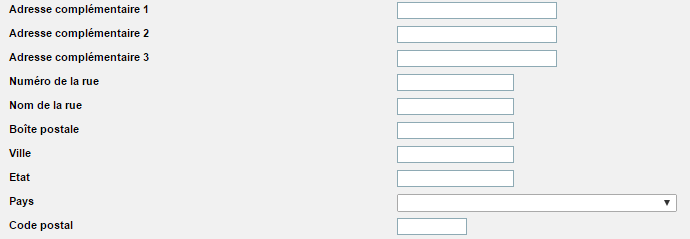- renseignez les différentes informations relatives à l'adresse et au code postal :