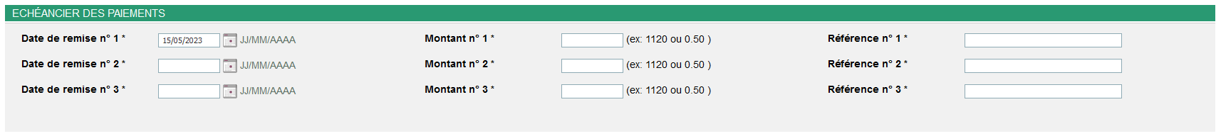 - saisissez les échéances pour les paiements ainsi que les montants associés à chaque échéance.