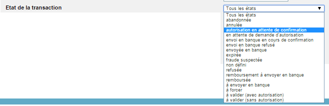 - état de la transaction : choisissez l'état dans la liste déroulante ;