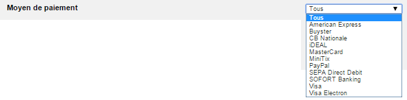 - moyen de paiement : choisissez un moyen de paiement dans la liste déroulante.