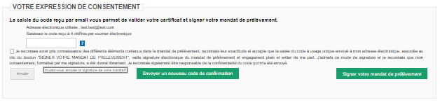 La page de confirmation de modification du mandat s'affiche :