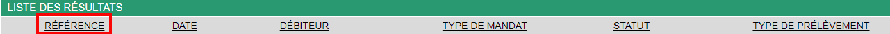 Pour revenir au détail du mandat, cliquez sur le lien "référence du mandat". Pour revenir à l'historique des prélèvements, cliquez sur le lien "identifiant du prélèvement"